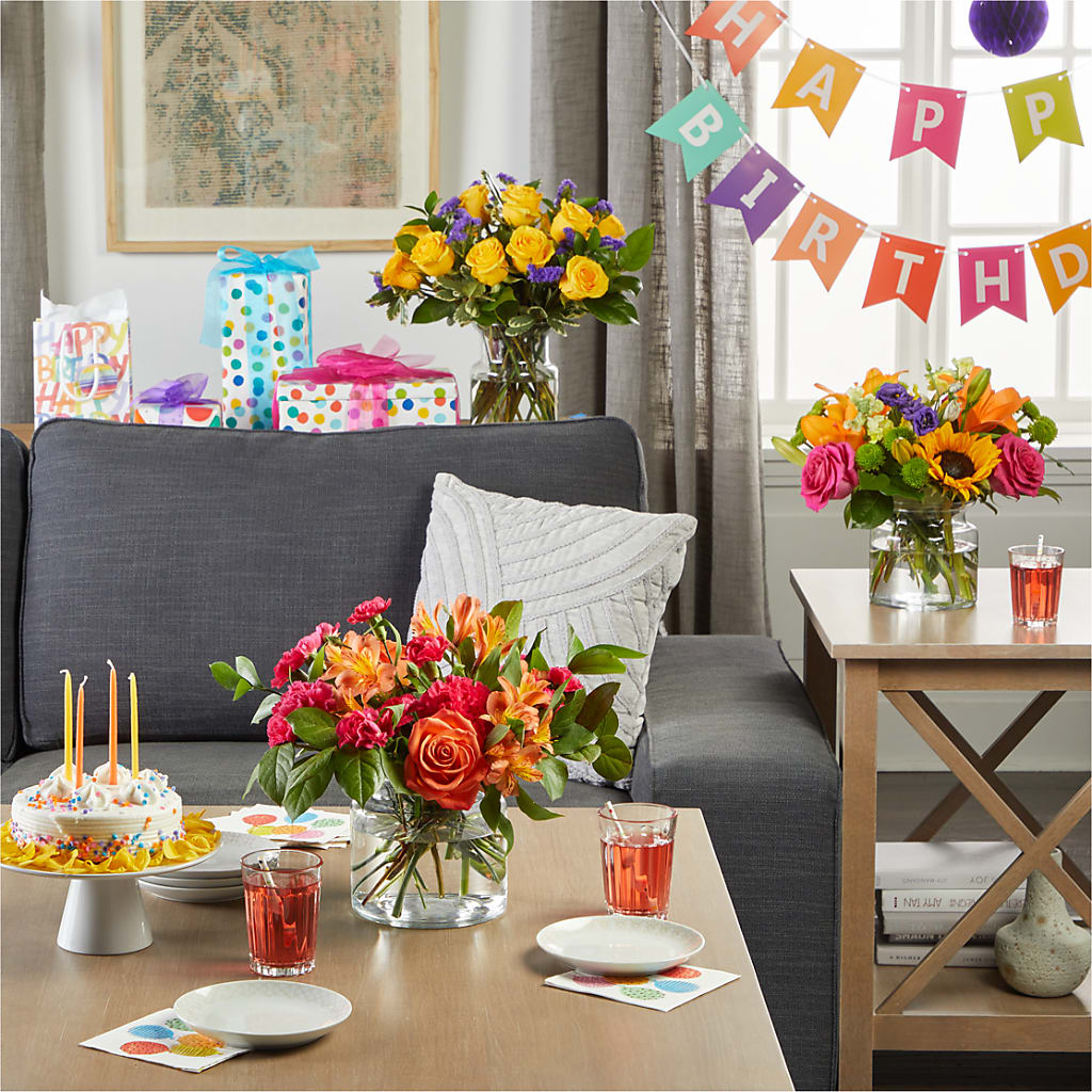 Birthdays are so much brighter when colorful blooms are involved – especially if they're fresh from a florist. Each arrangement is designed cohesively to decorate the birthday bash beautifully.